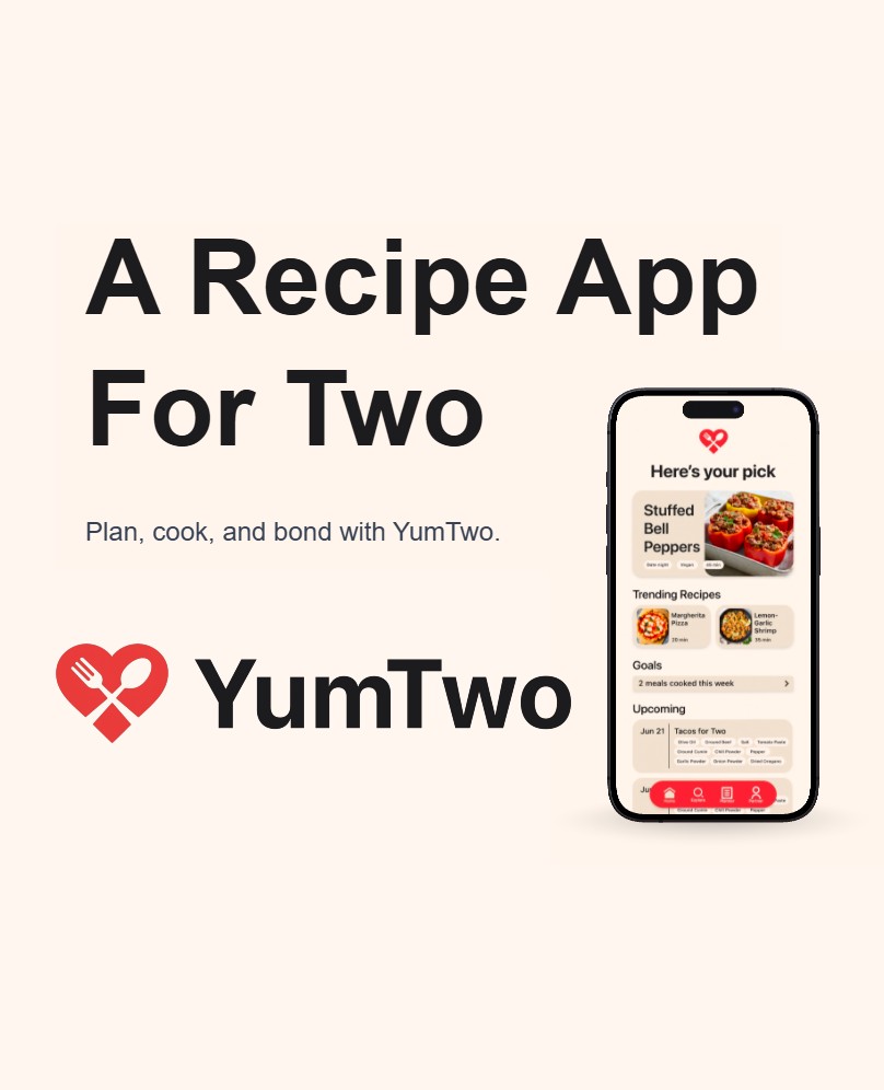 YumTwo™ is a cooking app designed for couples, making shared meals simple and fun. From recipe planning to step-by-step guidance, YumTwo helps partners bond over cooking while enjoying stress-free, interactive mealtime. The app inspires connection and joy through shared kitchen experiences.